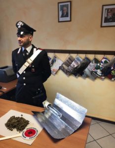 Alla luce di quanto emerso dal racconto circostanziato della vittima i Carabinieri di Nizza procedevano alla perquisizione dell’abitazione di Bergamasco (AL) dove vive il 40enne, con alle spalle alcuni precedenti per stupefacenti e porto abusivo di armi, dove effettivamente rinvenivano una pistola scacciacani in un cassetto nel quale, occultata in una busta, era presente anche una banconota falsa da 50 euro. Nel corso dell’operazione estesa alla cantina della residenza, i militari operanti rinvenivano e sottoponevano a sequestro ciò che rimaneva di una piantagione artigianale, per la quale erano stati utilizzati nove contenitori nei quali erano state invasate piante di canapa, una lampada a calore per la coltivazione in serra e un etto circa di sostanza stupefacente già essicata.