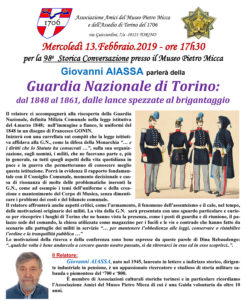MUSEO PIETRO MICCA: 98^ STORICA CONVERSAZIONE: “GUARDIA NAZIONALE DI TORINO: DAL 1848 AL 1861”