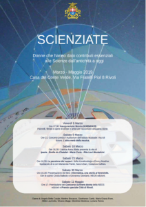 La mostra è curata da Rita Margaira, “Rivolididonne” con gli assessorati Pari Opportunità – Cultura – Istruzione di Rivoli, sulla vita di cinquanta sapienti in diverse scienze, dalla medicina all’astronomia. Molte di loro coincidono con quelle proposte insieme a “Teatro e Scienza” nel 2017 e 2018, presso la Regione Piemonte in piazza Castello a Torino, ma non sono tutte le stesse.