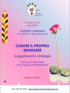 “Curare il proprio benessere. Suggerimenti e strategie” – Venerdì 15 Marzo 2019 –  ore 20,30 – Palestra Comunale – Via Trinità, 17 – Montaldo T.se TO.