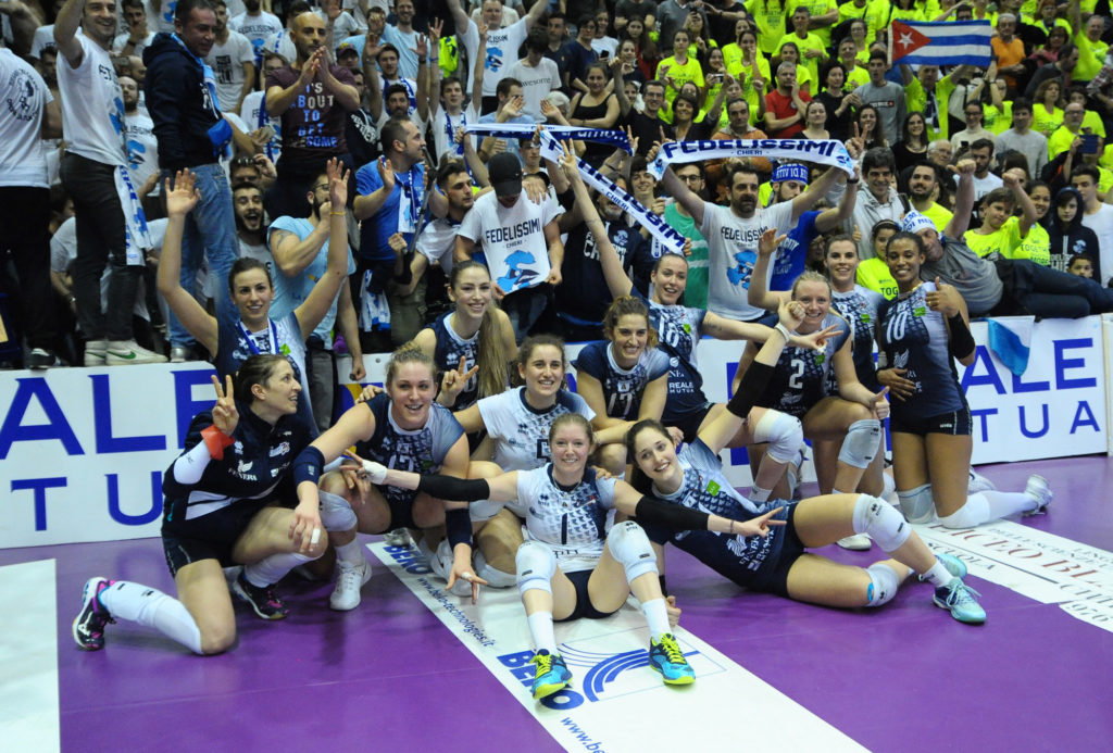 Quarto set – Sul 6-6 le padrone di casa salgono a 11-7 (ace Angelina), ma da 13-10 vengono recuperate a 13-13 (Veljkovic). Il set si decide sul 16-16 quando una diagonale da posto 2 di Angelina, un’invasione, e 2 muri di Middleborn e De La Caridad Silva spingono la Reale Mutua Fenera Chieri ’76 a 20-16. Coach Barbolini fa diversi cambi inserendo Nizetich, Camera e Bici, ma l’inerzia del set resta in mano alle biancoblù che sulle ali dell’entusiasmo non si fanno più avvicinare, guadagnano la prima palla set con un primo tempo di Akrari per chiudere quindi 25-19 su errore in attacco di Egonu.