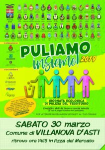 Torna a Villanova d’Asti la manifestazione “Puliamo insieme”, organizzato insieme alla provincia di Asti, coordinato dal consigliere Davide Pavesio e dall’assessore Giuliano Margari per il comune di Villanova. La pulizia del paese si terrà in data 30 marzo 2019 a partire dalle 14:00, con ritrovo presso l’ala del mercato. “Sarebbe bello – dice il sindaco di Villanova, Christian Giordano – iniziare a concentrarsi sul tema della plastica magari facendo un progetto scolastico mirato visto l’impatto enorme che ha sull’ambiente. L’amministrazione comunale, per il prossimo bando della mensa scolastica, che verrà pubblicato prossimamente, proverà a richiedere il divieto dell’utilizzo della plastica per le stoviglie ed in generale per i vari materiali che vengono dati a disposizione degli studenti che mangiano.”
