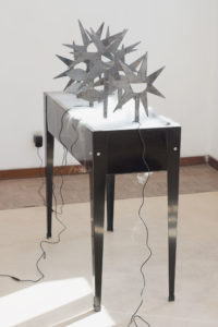 Definire con un titolo un’esposizione significa tracciare le linee di comprensione e le motivazioni di quell’ hic et nunc in cui l’artista agisce con le proprie opere in una determinata condizione ambientale, in quel microcosmo che la galleria d’arte rappresenta come vero e proprio contesto sociale. Per Theo Gallino avrei potuto invocare le solite poetiche alchimie che in fin dei conti ogni artista compie nel processo di trasformazione della materia. Ritengo però che al di là della poesia, della leggerezza estetica di cui parleremo più avanti, Gallino vada oltre, creando i presupposti strutturali di una nuova linguistica, il che significa -vedremo- ripensare in modo differente la realtà. In grammatica la proposizione è l’elemento essenziale del discorso (soggetto/predicato), in linguistica l’elemento strutturale della frase, nella logica è l’enunciazione di un giudizio (vero/falso) in un andamento pressoché simmetrico e binario. I mattoni del linguaggio dunque si rivelano fondamento del pensiero e di identificazione della realtà… In principio era il Verbo…o per dirla con Hegel è  “la forza della parola (Kraft des Spreches) che attua ciò che è necessario attuare”. Nell’introduzione alla Scienza della logica, circa il ruolo del linguaggio Hegel infatti sostiene che “Le forme del pensiero sono anzitutto esposte e consegnate nel linguaggio umano (…) tutto quello  che l’uomo estrinseca nel linguaggio contiene una categoria”.