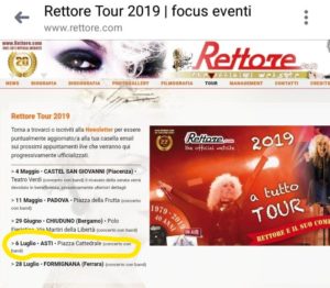 E’ quello di Rettore il nome che va a completare il calendario dell’edizione 2019 di Astimusica. La data è quella del 6 luglio ed è il sito della cantante a confermare il concerto, dove sono elencate le tappe del suo tour. Rettore sarà quindi in piazza Cattedrale nel giorno dell’Asti Pride che si concluderà in piazza San Giuseppe, sempre nel centro storico cittadino.