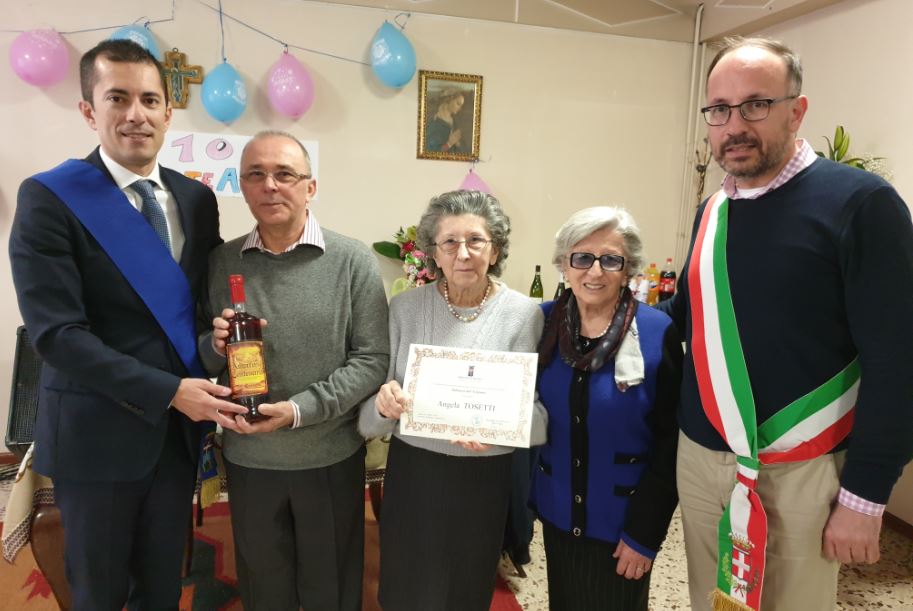 Nella foto: le due neocentenarie con gli amministratori