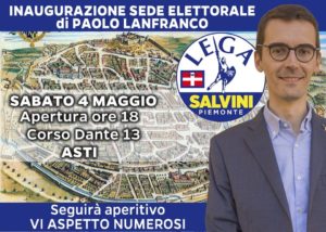 Alle 18, sarà Paolo Lanfranco ad inaugurare la sede del suo comitato elettorale in corso Dante 13. Lanfranco è sindaco di Valfenera e vice presidente della Provincia di Asti. E’ alla sua prima candidatura per le elezioni Regionali.