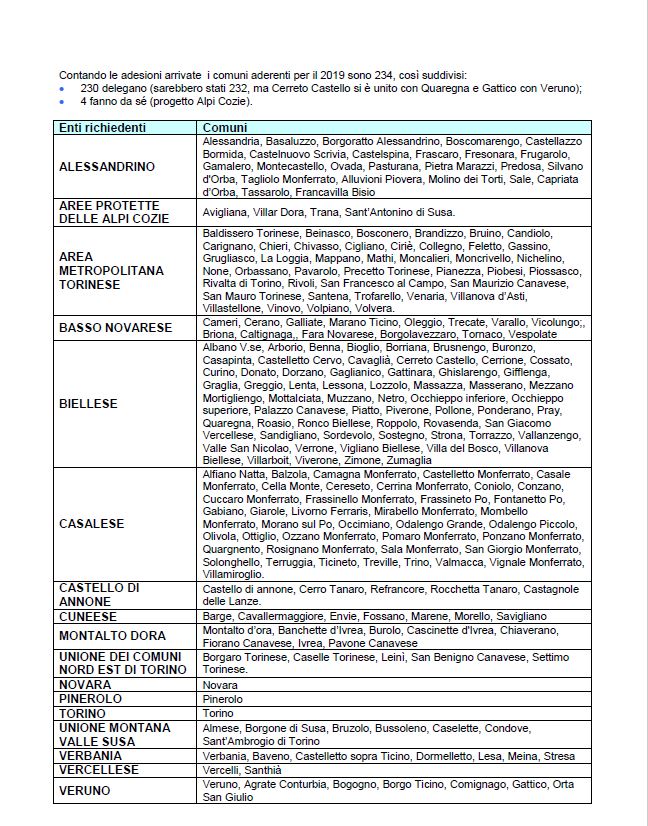234 i Comuni che hanno presentato richiesta di contributo per il co-finanziamento
