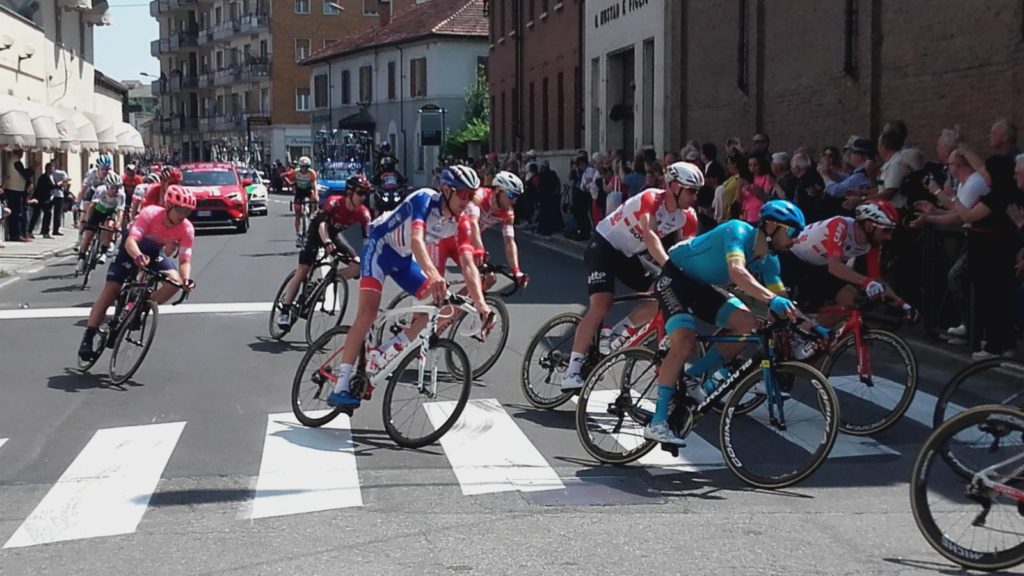 Il Giro d’Italia è arrivato a Pinerolo dopo la prima tappa di montagna, partita da Cuneo. Vittoria di Cesare Benedetti dopo una fuga di una ventina di corridori che ha sconvolto la classifica generale: la maglia rosa passa da Conti allo sloveno Polanc. Nelle foto di Pierangelo Cauda, i corridori di testa a poche curve dall’arrivo di Pinerolo.