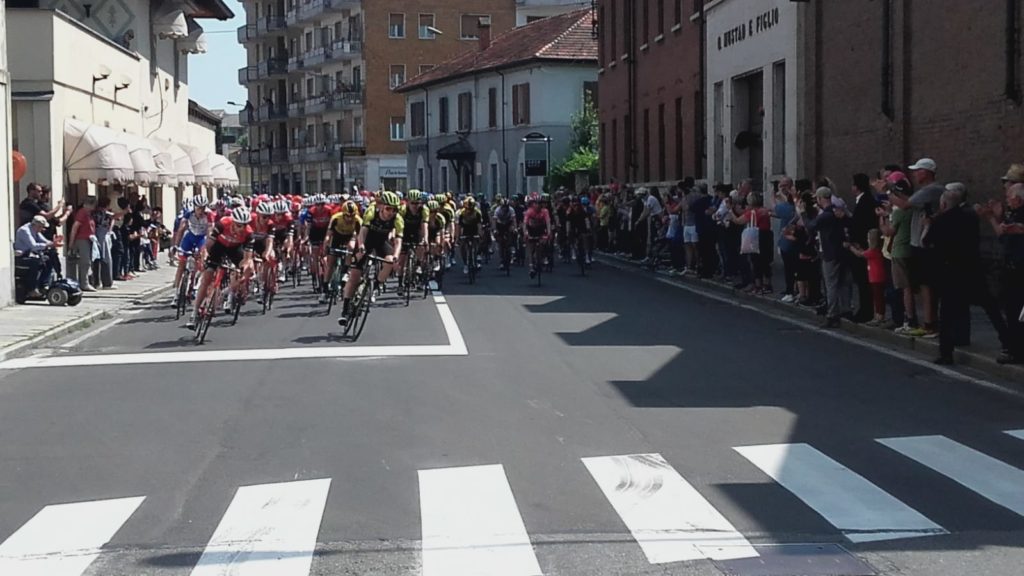 Il Giro d’Italia è arrivato a Pinerolo dopo la prima tappa di montagna, partita da Cuneo. Vittoria di Cesare Benedetti dopo una fuga di una ventina di corridori che ha sconvolto la classifica generale: la maglia rosa passa da Conti allo sloveno Polanc. Nelle foto di Pierangelo Cauda, i corridori di testa a poche curve dall’arrivo di Pinerolo.