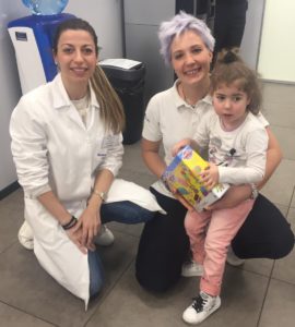 Nella foto, l’ultima seduta di fisioterapia della piccola Stella