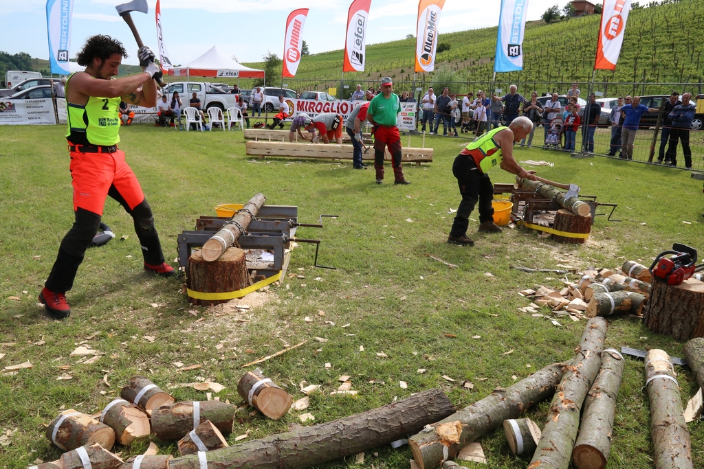 Domenica fortunata nei cieli di Vigliano, tra una goccia d’acqua e un raggio di sole, si è potuto svolgere l’intero programma! Giove pluvio dunque ha voluto graziare la 4^ prova del Triathlon dei boscaioli, Campionato italiano dei boscaioli che si è svolta domenica 26 maggio 2019 al Centro sportivo “G. B. Conti” di Vigliano. Un’originale giornata che ha visto la partecipazione dei migliori professionisti del settore, provenienti da tutta Italia, gratificati dall’affluenza di tanto pubblico che non si è fatto bloccare dalle condizioni meteo incerte.Grande spettacolo dei boscaioli con 25 concorrenti e gare appassionanti. Scultori che hanno realizzato vere opere d’arte per un pubblico appassionato.Una gara mozzafiato dove agilità, forza e precisione nell’uso degli attrezzi forestali la fanno da padrona. Gli atleti si sono sfidati sul campo, nell’abbattimento di un palo, operazione in cui è premiata la precisione, nella sramatura di un tronco, dove viene esaltata la velocità, e nel taglio con accetta, in cui si celebra la massima potenza. Le gare del Campionato servono per pubblicizzare le più recenti conquiste nella tecnologia delle utilizzazioni e di confrontare a livello nazionale le macchine, gli attrezzi e l’abbigliamento di sicurezza utilizzato dai boscaioli di professione. Nello svolgimento delle gare viene posta una particolare attenzione agli aspetti della sicurezza dei lavori nel bosco. L’obiettivo a lungo termine del Campionato è però quello di sostenere la professione del boscaiolo e di valorizzarne l’utilità dello stesso nel contesto di salvaguardia del territorio in cui opera.Sponsor del Campionato Italiano di Boscaioli sono i marchi storici di motoseghe, accessori ed attrezzature forestali, presenti in Fiera con i relativi stand dimostrativi.Particolare interesse hanno creato le sculture con le motoseghe. Una vera magia nata dalle lame motorizzate di una motosega che necessita di molta precisione e bravura.Uno spettacolo molto entusiasmante che ha visto i migliori boscaioli sulla piazza e scultori intenti a realizzare vere opere d’arte utilizzando la maestria delle loro mani e di una motosega per un pubblico appassionato. La fiera agricola ha proposto attrezzature e macchine da giardino veramente interessanti. La rassegna dei trattori d’epoca (purtroppo in edizione ridotta a causa del maltempo) e il pranzo preparato dai cuochi della Pro Loco hanno fatto il resto per completare l’intrattenimento di una bella e originale domenica! Organizzazione impeccabile della Pro loco di Vigliano…