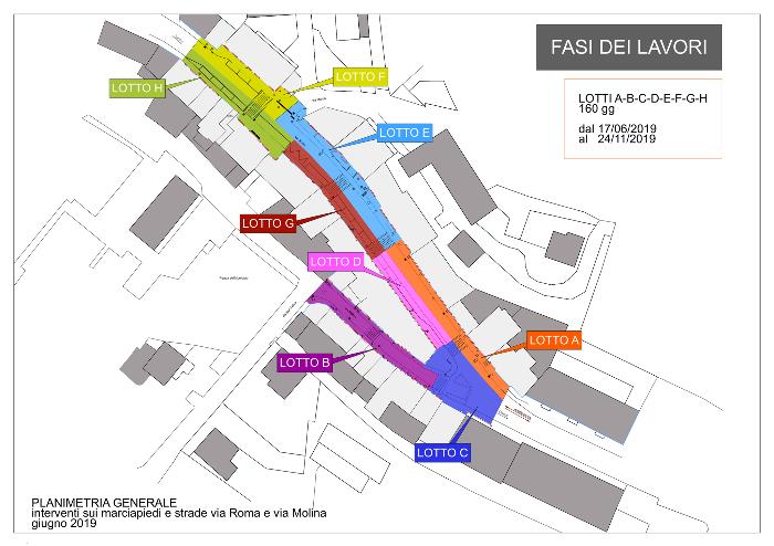 ???? ????????’ ?? ????????? A partire dal 10 giugno è stata posizionata la cartellonistica e allestita l’area logistica del cantiere, così da poter poi avviare i lavori veri e propri. ?? ???????̀ ??? ?? ??????????? ??? ?????? ?? ??? ???? ???????? ??? ? ?????? ?? ? ?? (???? ?????? ? ??????). L’intervento procederà poi per tratti successivi, 6 in totale, della durata di circa 20/30 giorni ciascuno (variabili a seconda della presenza, o meno, di sottoservizi da riqualificare). Nei mesi di luglio e di agosto i lavori riguarderanno contemporaneamente l’ultimo tratto della via Molina, via Roma e l’area di incrocio tra le due strade. ??? ?????? ?????̀ ?????? ?? ???????? ????????? ??????????????? ??? ?? ?????? ???’? ????????? e per defluire dal parcheggio della piazza del Municipio, sempre aperta, si potrà utilizzare la via San Felice. Successivamente i lavori proseguiranno per i rimanenti lotti, la conclusione è prevista per fine novembre. Sulla via Roma la circolazione stradale sarà garantita da un senso unico alternato regolamentato da semaforo o da movieri, così da consentire la circolazione dei mezzi e al tempo stesso lo svolgimento dei lavori. ??????, ?????? ? ?????????? ??????? ?????? ?????????????, ????? ????? ? ?????????? ????????????, ????̀ ???? ?????????? ???????????, ?? ??????? ????’?????, ??? ??????? ????????? ????????? ?? ??? ???? (momentaneamente rimossi per consentire lo svolgimento dell’intervento).