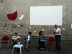 Dopo l’inaugurazione del nuovo spazio all’aperto della biblioteca,Il cortile impreziosito dal murale realizzato dagli studenti dell’istituto Parodi di Acqui Terme, giovedi 13 giugno alle ore 21 si è proposto un primo incontro. Si è parlato di disabilità e di integrazione, affrontando gli argomenti con la testimonianza di due ospiti e la proiezione video dal titolo “Storie di ordinaria disabilità – Una vita indipendente”. Sono intervenute raccontando le loro esperienze per la loro opera di sensibilizzazione sulle pari opportunità e per l’impegno a favore della partecipazione attiva e della piena inclusione sociale delle persone portatrici di disabilità: Maria Teresa Montanaro, vice presidente dell’associazione L’Arcobaleno e Angela Trevisan, autrice del libro autobiografico “Io non mi schiodo Diario di una donna determinata”che hanno portato le loro testimonianze. Durante l’incontro sono stati effettuati interventi di sensibilizzazione e divulgazione sulle problematiche della disabilità sensoriale e motoria. Nell’occasione si è parlato anche dello spettacolo teatrale “Passo e vedo 3: storie di ordinaria disabilità”, scritto ed interpretato da Renata Sorba e Maria Teresa Montanaro, per la regìa di Alessio Bertoli con l’obiettivo di diffondere il concetto che la disabilità non è un peso, ma una risorsa per la società e dare visibilità non tanto alla disabilità, ma alla persona disabile. Angela è non vedente dalla nascita e vive su una sedia a rotelle a causa di una tetraparesi.Una storia di grande coraggio e determinazione, raccontata però in maniera leggera, come solo chi sa di essere più forte delle avversità della vita può fare. La scrittrice Maria Teresa Montanaro è una paraplegica per un grave incidente d’auto e ha ricevuto un duplice riconoscimento in due importanti concorsi nazionali :a Torino, con “E il Viaggio continua”, è stata premiata con il trofeo del “Gufo”, d’argento e a Roma è stata premiata con la targa per il secondo posto con il racconto “Mister A”. L’associazione L’Arcobaleno, da lei fondata è nata per migliorare le occasioni di inclusione sociale delle persone con disabilità motoria grave e per raccoglierne esperienze, bisogni e segnalazioni. Dopo la piacevole chiacchierata, è seguito, un rinfresco con vini offerti dall’Enoteca regionale di Nizza Monferrato.