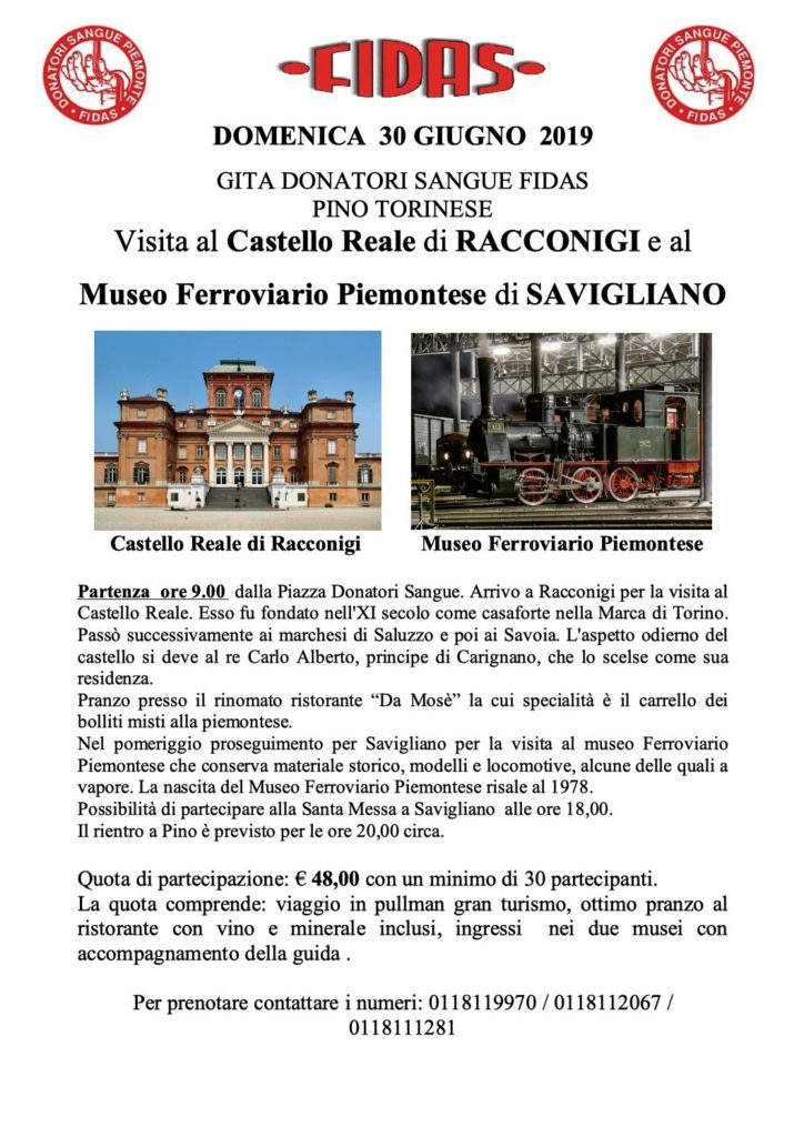 Il Gruppo Fidas di Pino propone ai donatori del sangue ma anche più in generale a tutti gli amici dei donatori del sangue una bella gita a Racconigi e Savigliano.
