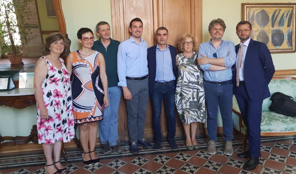 Prima riunione della nuova Giunta  di Chieri, presieduta dal sindaco Alessandro Sicchiero. D’obbligo la foto di gruppo (di Roberto Zanchettin)