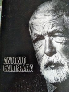 Parlando degli artisti attualmente in mostra, ricordiamo anzitutto Antonio Calderara (nella foto), molto noto anche per la sua omonima fondazione e museo. Calderara, nato ad Abbiategrasso il 28 ottobre 1903 e deceduto a Vacciago di Ameno il 27 giugno 1978, inizialmente seguace della pittura lombarda divisionista, si dedica all’arte figurativa fino agli anni ’50 del XX° secolo, successivamente passa a forme aniconiche e decisamente astratte, per influenza della tradizione costruttiva svizzero-tedesca, forme con cui raggiunge una meritata notorietà. Carlo Nangeroni invece, nato a New York il 24 giugno 1922, dopo essere entrato in contatto con le idee ed i protagonisti dell’action painting, come Willem De Kooning e Franz Kline, per un breve periodo dipinge con orientamento astratto espressionista, mentre considera con interesse i traguardi di Rotko e Tobey, quindi nel 1958, rientrato nuovamente in Italia, conosce il critico Carlo Belloli e gli artisti dell’ambiente milanese, sviluppando nelle sue opere una graduale evoluzione verso problematiche cromostrutturali. Ugo Nespolo, nato a Mosso Santa Maria il 29 agosto 1941, vicino alle esperienze di Baj all’inizio degli anni ’60, sviluppa una ricerca neo-dada, incentrata sul rapporto tra arte e gioco, con riferimenti alle immagini infantili, al fumetto, al mondo dell’arte, ad elementi della realtà quotidiana scomposti e ricomposti. Mauro Staccioli, più conosciuto come scultore, nato a Volterra nel 1937, quindi trasferitosi a Milano, si interessa di problemi della ricerca e della sperimentazione dell’insegnamento artistico. Egli descrive il proprio lavoro come un intervento in una situazione data; le forme da lui usate, benché visibilmente derivate dalla Minimal Art, sono determinate e subordinate al carattere del posto in cui devono essere collocate, sono quindi dei veri interventi ambientali. Joe Tilson infine, scultore e pittore, nato a Londra nel 1928, è tra i protagonisti della Pop Art inglese. Ha sperimentato diversi materiali e tecniche, giungendo, negli anni ’60, a soluzioni originali, con la serie di dipinti e costruzioni ispirate ai giochi a incastro dei bambini o al tema della “ziqqurat”.