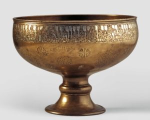 l’acqua da bere e tutti gli strumenti che servono per raccoglierla, immagazzinarla e distribuirla, quali brocche, kilga, acquamanili, vasi, bocche di fontana. In questi oggetti lo status del proprietario è espresso attraverso lo sfarzo dei materiali di realizzazione, la citazione del suo nome o le invocazioni religiose ivi riportate che ne fanno un’opera meritoria che salverà la sua anima.