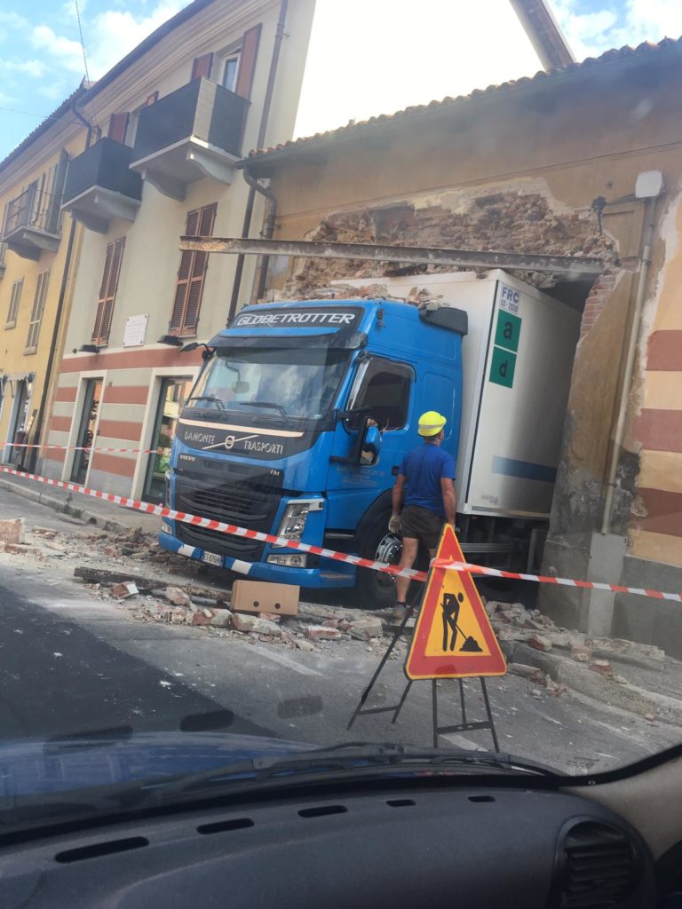 CRONACA – Chieri, camion in retromarcia resta incastrato nell’ingresso del magazzino: traffico in tilt in Via Vittorio