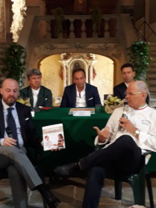 enogastronomiche, passando per l’intervento del presidente della Regione, Alberto Cirio, che in un affollato convegno ha proposto una unica associazione di produttori di nocciole con un tavolo paritetico dove ogni anno produttori, trasformatori e industriali si confrontano sul prezzo del prodotto. Lo chef cortemiliese Calo Zarri, infine, ha presentato il suo libro “Da Sophia a Michelle” : due icone, l’ex first lady americana e la famosa attrice, per cui ha cucinato, e a cui ha dedicato rispettivamente una ricetta vegetariana e la ricetta del filetto di fassone. Nel pomeriggio, il tradizionale lancio delle nocciole da parte delle nizurere (ragazze in costume vintage da raccoglitrici di tonde) e dei nizurin, evento accompagnato dalla Confraternita della nocciola, dalla mascotte Nocciola, dalla banda musicale e dalle majorettes.