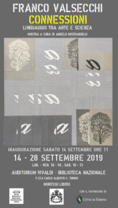 Sabato 14 settembre 2019, alle ore 11, si inaugura nella Sala Mostre dell’Auditorium Vivaldi della Biblioteca Nazionale Universitaria, in piazza Carlo Alberto 5, la mostra dedicata alla ricerca dell’artista Franco Valsecchi, intitolata «Connessioni. Linguaggio tra arte e scienza», a cura di Angelo Mistrangelo. Ospitata nel programma espositivo della Biblioteca Nazionale Universitaria, con l’Associazione Amici della Biblioteca Nazionale Universitaria, il patrocinio della Città di Torino e la fattiva collaborazione della Famiglia Valsecchi, l’esposizione si sviluppa attraverso 54 opere che documentano il percorso espressivo e l’intenso e interiorizzato linguaggio concettuale di Franco Valsecchi (Biella 1929-Torino 2015). Per questa occasione, vengono presentati i lavori dei cicli «Numeri trauma», «Mutazioni», «Io entità», «Genesi», «Situazioni», «Composizioni strutturali» e «Arte Psichica», che hanno riscosso nel tempo un ampio riconoscimento da giornalisti e critici d’arte come Giorgio Sebastiano Brizio, Claudio Cerritelli, Paride Chiapatti, Angelo Dragone, Albino Galvano, Francesco Prestipino, Franco Torriani.