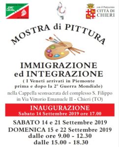 A Chieri, nella cappella sconsacrata del complesso San Filippo, mostra di pittura “Immigrazione ed Integrazione- i Veneti arrivati in Piemonte prima e dopo la 2^Guerra Mondiale. Inaugurazione Sabato 14 settembre alle 17.