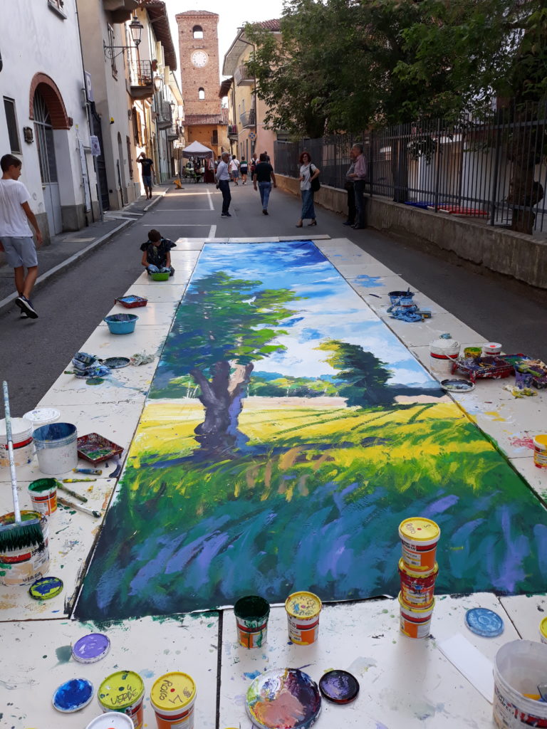 Claudio Rabino, dopo il successo della sua personale alla Regione Piemonte e la partecipazione alla Fiera internazionale al Grand Palais di Parigi, è stato tra i grandi protagonisti a “Cambiano come Montmartre”: la sua performance dedicata all’albero, una tela di due metri per dieci, ha attirato e affascinato gli spettatori, con i suoi colori caldi e un vero trionfo della fantasia.