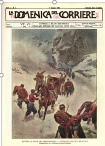 Una grande storia editoriale italiana che, attraverso la matita di Achille Beltrame prima e Walter Molino poi, ha descritto, settimana dopo settimana, i fatti del Novecento con la cifra dell’Arte. Dalla necessità di restituire sotto forma di ‘copertine’ le chiavi di partecipazione alla Storia, di inventare simulacri unificanti tra provincia e urbe, patria e estero, si può dire che la Domenica de Corriere abbia dato, ai suoi due più famosi illustratori, il compito di riprodurre e rendere palpabile la tensione e le aspirazioni provenienti quotidianamente dal racconto della realtà, con il surplus di una certa ‘abbondanza’ visiva gioiosa, che ricorda i lavori di Boccasile.