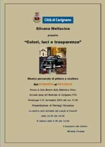 CARIGNANO: MOSTRA COLORI, LUCI E TRASPARENZE DI SILVANA MELLACINA