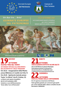Anche Pino aderisce alle Giornate Europee del Patrimonio, l’appuntamento annuale promosso in Italia dal Ministero per i Beni e le Attività Culturali per riaffermare la centralità del patrimonio culturale e del suo valore storico, artistico, identitario, che quest’anno si svolgerà nei giorni di sabato 21 e domenica 22 settembre.