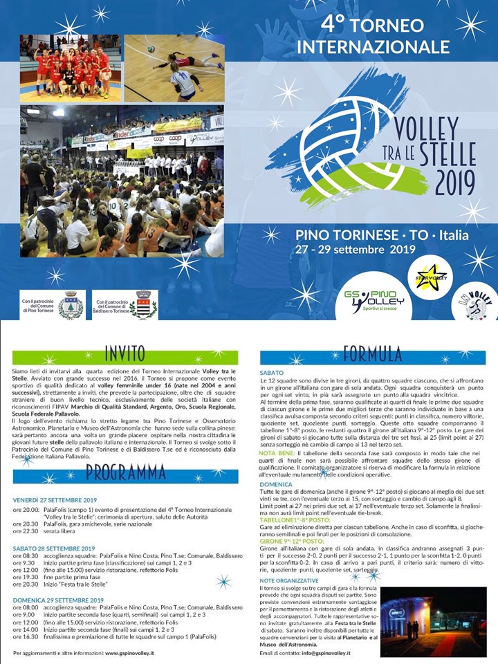Grazie all’iniziativa ed all’impegno dei volontari del GS Pino Volley ed al supporto dell’Amministrazione Comunale anche quest’anno Pino Torinese ospiterà uno splendido evento sportivo di cui trovate programma e informazioni dettagliate nel pieghevole.