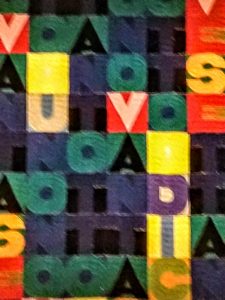 Alighiero Boetti, uno degli artisti presentati in questa rassegna (nella foto particolare di un’opera), ha ormai raggiunto una evidente notorietà. Nato a Torino il 16 dicembre 1940 e deceduto a Roma il 24 aprile 1994, negli anni 1969-1970 ha partecipato al gruppo dell’Arte Povera, sviluppando la propria ricerca in direzione concettuale, con particolare attenzione agli effetti lucidi e combinatori, utilizzando materiali insoliti. Nel 1971 termina l’opera in progress “Dodici forme a partire dal 10 giugno 1967”, che formalizza il crescente interesse per l’intreccio politica, geografia e informazione. Compie una serie di viaggi: il Guatemala, l’Oriente e poi, un po’ per caso, il 15 marzo parte per l’Afghanistan, dove rimarrà più di un mese. Considerata dall’artista come una seconda patria, vi si recherà frequentemente due volte all’anno fino al 1979. A Kabul nasce il suo primo ricamo su tessuto, tecnica che poi lo renderà famoso. Boetti intreccia anche rapporti con le persone del posto, non solo le giovani ricamatrici della scuola della signora Kandi, con le quali dà vita ad una fiorente “Factory” afghana, ma, improvvisandosi imprenditore alberghiero, apre un hotel in un quartiere residenziale a Kabul. Fra il 1981 e il 1982 espone in Francia alla grande mostra curata da Célant al Centro Georges Pompidou. In Italia due importanti personali a Torino e Roma, rispettivamente da Franz Paludetto e da Mario Diacono. Inoltre sempre a Roma alle Mura Aureliane per la collettiva “Avanguardia Transavanguardia”, curata da Achille Bonito Oliva. Fra il 1985 e il 1986 ha lo studio in via del Pantheon, nei pressi dell’amatissimo tempio romano. Con il contributo delle donne afghane, rifugiatesi a Peshawar in Pakistan, proseguono i lavori a ricamo dell’artista: le mappe aggiornate del mondo, nuove scacchiere di lettere colorate e arazzi monocromi. Ha un forte impulso il lavoro dedicato agli arazzi di piccola e grande dimensione. Tra il 1990 e il 1991 è a New York con due personali. Inoltre numerose personali in Germania, Francia e Austria. Nel febbraio 1993 personale storica a Torino negli spazi della galleria “Christian Stein”, la sua ultima in Italia. Muore infatti a Roma l’anno seguente.