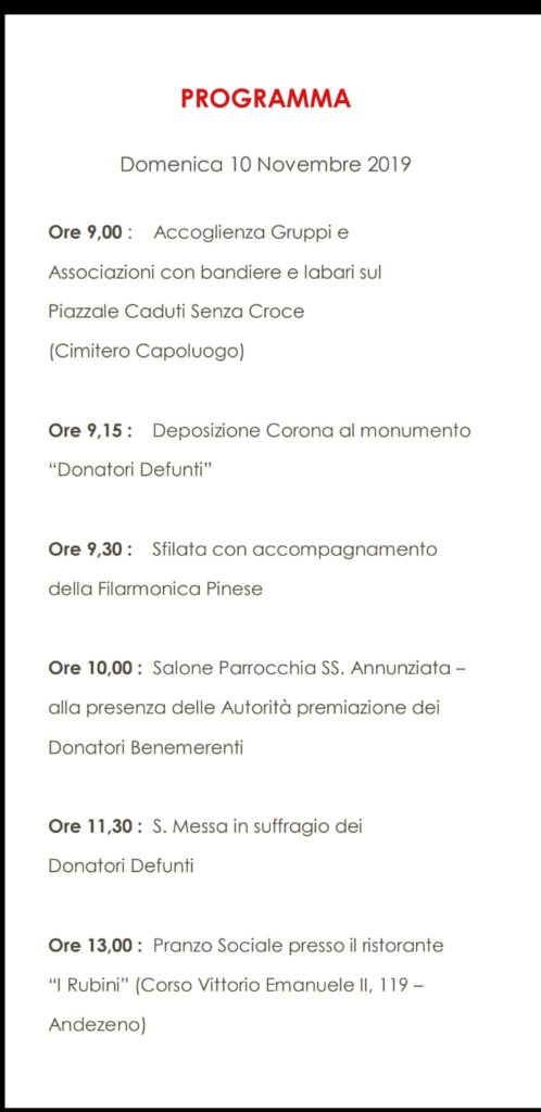 Pino Torinese, domenica 10 novembre il programma della festa annuale del gruppo dei donatori di sangue Fidas di Redazione · 4 Novembre 2019 Visto da: 41