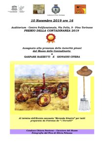 Il Museo delle Contadinerie propone anche quest’anno – in collaborazione con il Comune di Pino – una nuova edizione del “Premio della Contadinanza”. Si tratta di una bella iniziativa che vuole evidenziare il ruolo ed il valore che la comunità civile attribuisce alle persone che hanno dedicato la loro vita al lavoro nel mondo dell’agricoltura nel nostro paese.