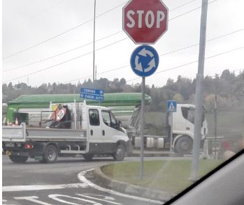 CRONACA – Chieri-Pino Torinese, caos alla rotonda: camion contromano per evitare la strettoia