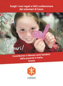Cesvi ripropone l’iniziativa “Impacchettiamo un sogno” e cerca volontari per confezionare pacchetti regalo in occasione del Natale, in oltre settanta punti vendita in Italia. Durante il periodo delle feste Cesvi ha bisogno dell’aiuto di tante persone per realizzare un’importante raccolta fondi a sostegno dei progetti di tutela dell’infanzia in Italia; l’organizzazione umanitaria fondata a Bergamo nel 1985 si occupa da molti anni di portare avanti attività di child protection nelle aree più critiche del mondo, dove salute, benessere e sicurezza dei bambini sono gravemente a rischio. Ma il problema della condizione dei bambini riguarda sempre di più anche l’Italia, dove 1,2 milioni di bambini vivono in povertà assoluta. Non hanno opportunità di giocare, praticare sport e migliorare le proprie conoscenze, capacità relazionali e in generale le proprie condizioni rispetto alla famiglia di origine. La povertà in questi contesti non è solo materiale ma soprattutto educativa, relazionale ed affettiva.