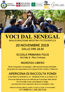Sarà ospitata all’interno della Scuola primaria Folis (via Folis, 8 Pino Torinese) la Mostra fotografica “Voci dal Senegal”, una raccolta di scatti e testi che raccontano l”ultimo viaggio di una rappresentanza di Pinesi a Pikine Est svoltosi a ottobre 2019. L’inaugurazione della Mostra è in programma alle ore 18.30 nell’atrio della Scuola Folis.