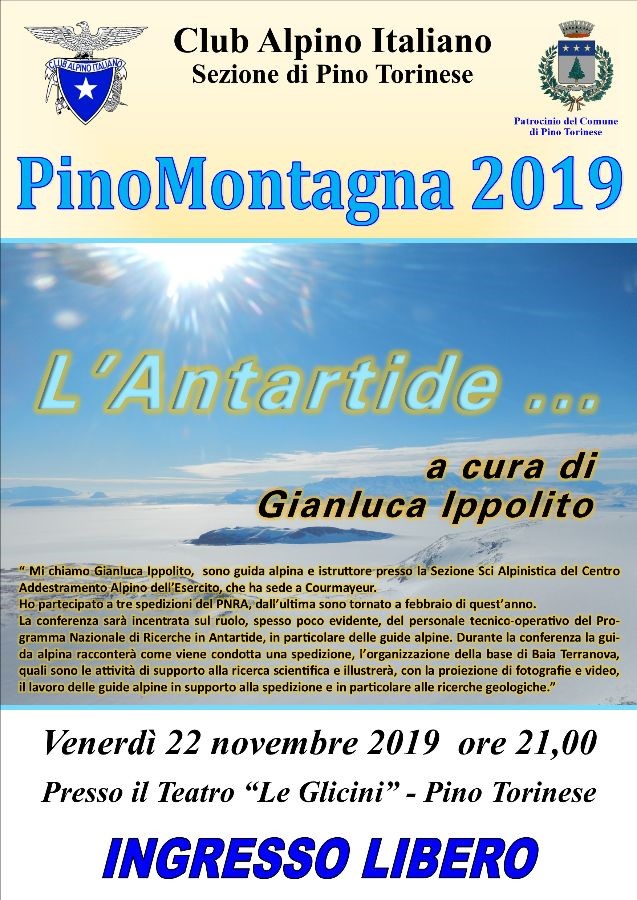 Pino Torinese, venerdì 22 novembre “l’Antartide” per Pino Montagna 2019