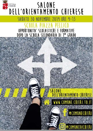 Torna il Salone dell’Orientamento Chierese, nei locali della scuola di Piazza Pellico. Si svolgerà sabato 30 novembre 2019 dalle 9 alle 13. Il Salone è una occasione per parlare direttamente con insegnanti e ragazzi delle scuole sulle opportunità scolastiche e formative dopo la Scuola Secondaria di 1° grado. E’ annunciata la presenza di ben 28 scuole e agenzie formative di Chieri, Chierese e Torino. Saranno presenti anche lo sportello dell’associazione italiana dislessici il centro per l’impiego e Obiettivo Orientamento Piemonte della Regione.