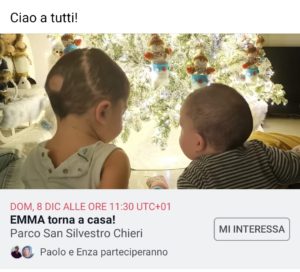 A due mesi dall’incidente davanti alla scuola materna di Corso Torino, e tanti giorni con il fiato sospeso all’ospedale Regina Margherita, a seguire i piccoli progressi di questa bambina di due anni e mezzo per la quale hanno pregato centinaia, migliaia di chieresi, finalmente per Emma le dimissioni dall’ospedale e il ritorno a casa, a Chieri. I famigliari hanno pensato di estendere la festa a tutti coloro che hanno diviso la loro paura e ora la gioia: “Domenica saranno 2 mesi esatti dall’incidente – scrivono su facebook -. Abbiamo pensato di abbracciarvi tutti insieme, tutti voi che pur non conoscendoci avete pregato con noi per lei. Quindi, alle 11.30 noi saremo al parco San Silvestro. Lo riempiremo di palloncini… E vi aspettiamo!”.