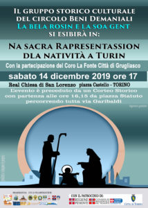 La Bela Rosin e la soa Gent (del Circolo Beni Demaniali) ORGANIZZA Sabato 14 dicembre “NA SACRA RAPRESENTASSION DLA NATIVITA’ A TURIN 2019” 8a Edizione