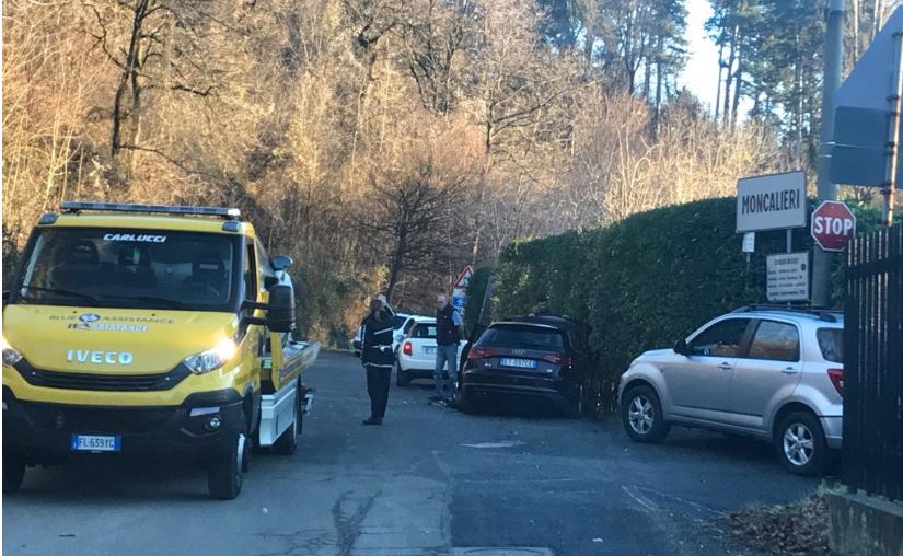 Al confine di Moncalieri, sulla collina, all’altezza dell’ incrocio con Strada Cavoretto, nel pomeriggio di oggi sabato, scontro frontale tra una Audi e una Alfa Romeo: causa, una probabile mancata precedenza. Danni alle vetture, solo contusi. La polizia locale sta ricostruendo l’esatta dinamica del sinistro (foto Elena Braghin)