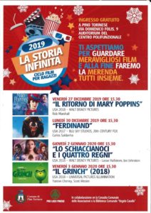 4 film divertenti, 4 momenti dedicati ai più piccoli per trascorrere un pomeriggio in allegria e divertendosi: l’ingresso è gratuito, e al termine della proiezione è in programma una buona merenda tutti insieme!