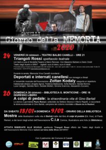 Le celebrazioni canellesi per la Giornata della Memoria 2020 sono iniziate sabato 18 gennaio nei locali della Biblioteca Gigi Monticone, dov’è esposta una piccola, ma significativa mostra di illustrazioni tratte dal libro A colpi di pedale: la straordinaria vita di Gino Bartali, di Paolo Reineri (Ed. Ave), integrata dai lavori degli artisti dell’Associazione C.i.a Comics, Illustrations and Arts. Secondo Ornella Domanda, segretaria di Memoria Viva, “la mostra è un’ottima occasione perché le famiglie si rechino insieme in Biblioteca potendo riflettere su un fenomeno drammatico come la Shoah attraverso la storia a fumetti di un grande campione di sport e di umanità”.Venerdì 24 gennaio, alle ore 21, al Teatro Balbo, il Teatro degli Acerbi e l’Israt proporranno lo spettacolo teatrale Triangoli Rossi, con testi a cura di Nicoletta Fasano e Mario Renosio, tratti da testimonianze e memorie degli astigiani deportati nei campi di concentramento nazisti. Interpreti dello spettacolo saranno Massimo Barbero e Dario Cirelli. Nel corso della serata, Memoria Viva Canelli ricorderà i deportati e internati canellesi con immagini e filmati, mentre l’ensemble musicale dell’Associazione Zoltan Kodaly eseguirà un repertorio tradizionale ebraico.Per Mariapia Di Matteo, Presidente Memoria Viva, “questa serata e, più in generale, l’intero programma, nascono dalla collaborazione tra tante associazioni e istituzioni diverse, che vogliamo qui ringraziare, e ci dà l’occasione di riflettere sul fenomeno storico della deportazione a vari livelli e con vari linguaggi”. L’associazione è nata nel 2005 con l’intenzione di recuperare la memoria storica della storia contemporanea, della Seconda Guerra Mondiale e promuovere iniziative di riflessione, che permettano di attualizzare il senso della storia per renderla fruibile a tutti i cittadini.L’idea nasce dalla sensazione che, andando via via scomparendo coloro che allora ne sono stati protagonisti e oggi ne diventano testimoni, si tenda ad affievolire l’attenzione ai valori dei quali sono stati portatori.Col tempo si sono progettate iniziative varie, sempre attente ad attualizzare la memoria prima che a celebrarla.Domenica 26 gennaio, alle ore 16, nuovo appuntamento in Biblioteca Gigi Monticone, dove lo storico, giornalista e scrittore Paolo Reineri, sollecitato da Stefano Sibona e Vittorio Rapetti, ci racconterà la storia eccezionale di Gino Bartali, grande figura dello sport italiano e del ciclismo mondiale, ma allo stesso tempo un personaggio a dir poco memorabile per quanto ha saputo fare durante la sua vita. Primo fra tutti va ricordato il suo impegno a difesa di centinaia di ebrei durante la Seconda guerra mondiale, per cui nel 2013 è stato riconosciuto Giusto tra le nazioni e ha ricevuto la Medaglia d’oro al merito civile del Presidente della Repubblica. Il programma della Giornata della Memoria, patrocinato dal Comune di Canelli, prevede delle attività riservate alle Scuole, tra le quali una replica straordinaria dello spettacolo Triangoli Rossi, del Teatro degli Acerbi e dell’Israt, offerta gratuitamente agli studenti grazie anche all’intervento dall’Associazione Memoria Viva, e la lezione speciale sulla Shoà tenuta dall’Istituto della Storia della Resistenza di Asti. Da segnalare, infine, che l’Associazione Memoria Viva e il Comune di Canelli stanno collaborando per intitolare al più presto alcune vie alle vittime canellesi della deportazione e dell’internamento nazi-fascista.