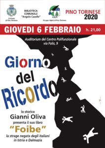 Pino Torinese, giovedì 6 febbraio con il professor Gianni Oliva per il “Giorno del Ricordo”
