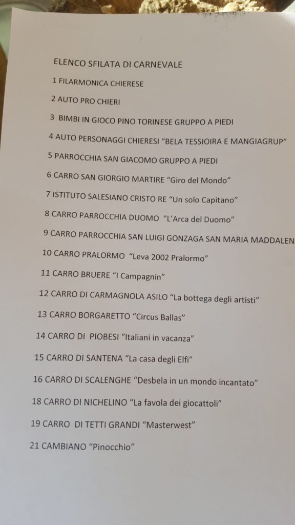 Decolla nel fine settimana il Carnevale di Chieri, in programma da venerdì 31 gennaio a domenica 2 febbraio. La nuova Bela Tessioira è Roberta Ronco, di origine chierese, 23 anni, infermiera professionale alla clinica Don Gnocchi di Torino. Il suo Mangiagrop è rivese, Stefano Pennazio, 20 anni, imprenditore agricolo nell’azienda di famiglia, a Madonna della Fontana a Riva. Saranno investiti da Giandoja venerdì 31 gennaio alle 20,30 in Sala Conceria, alla presenza di una cinquantina di gruppi mascherati da numerose località del Piemonte.Sempre in Sala Conceria, sabato 1° febbraio sarà inaugurata la mostra dei disegni dei bambini delle scuole chieresi che hanno partecipato al concorso “Disegna i colori del Carnevale a Chieri”. Partecipano i plessi scolastici delle scuole primarie e dell’infanzia di Via Fea, Via Tamagnone, Via Lazzaretti, Strada Cambiano, Via Fratelli Cervi, Piazza Pellico, Celestina Costa, Borgo Venezia, Nostra Signora della Scala, Sant’Anna e Santa Teresa. A seguire si potrà assistere ad uno spettacolo di cabaret con Maco e Mauro. Domenica 2, in mattinata, l’omaggio di Tessioira e Mangiagrop alla Madonna delle Grazie in Duomo farà da premessa alla sfilata dei carri allegorici, con partenza e arrivo in Piazza Dante e percorso classico attraverso Via Palazzo di Città, Via Orfane, Via Principe Amedeo, Via Cesare Battisti, Via Roma, Via Vittorio Emanuele e Piazza Dante. La sfilata inizierà alle 14,30. Carri da Chieri e dal Chierese, ma anche da Bruere, Borgaretto, Piobesi, Nichelino, Carmagnola, Scalenghe. Una ventina in totale. Bambini protagonisti e oratori non solo di Chieri in prima fila per la sfilata: annunciati carri e gruppi mascherati da tutti gli asili e scuole elementari cittadine, mentre in prima fila ci sono Duomo, Maddalene, San Luigi Gonzaga e San Giorgio con partecipazione anche di un gruppo di San Giacomo.