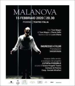 SCIARA PROGETTI TEATRO, IL COMUNE DI POIRINO E LA COOPERATIVA SOCIALE MIRAFIORI ONLUS Vi invitano a partecipare allo spettacolo MALANOVA con Ture Magro
