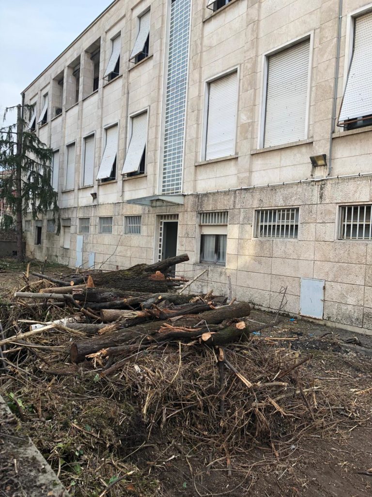 Disboscamento e pulizia della parte esterna dell’ex Enel di viale Cappuccini, a Chieri: inizieranno forse a breve i lavori di ristrutturazione? (Foto di Luciano Berruto)