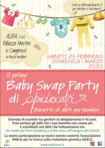 Chiara Pelassa, presidente e fondatrice di ApidiCarta, una piccola Onlus Piemontese con sede a Poirino che da 3 anni organizza eventi a scopo benefico, presenta la prossima iniziativa dell’associazione. “Quest’anno – dice – ci prendiamo cura dell’ambiente e per evitare lo spreco e sensibilizzare le famiglie al riciclo organizzeremo ad Alba presso il Palazzo Mostre e Congressi G.Morra il 29 febbraio e il 1 marzo 2020 due giornate dedicate alla natura, all’ecosostenibile, ai bimbi e alle famiglie. Un enorme gigantesco e sfavillante Baby Swap Party By ApidiCarta!  Lo “swap” deriva da un termine inglese per indicare il baratto, lo scambio –è una pratica che si è affermata in Usa e Inghilterra come alternativa low cost allo shopping: si tratta di incontri in cui i partecipanti scambiano abiti, scarpe, accessori ma anche giochi e libri per bambini. Come sostengono gli esperti “swappare” è utile perché  il baratto è amico dell’ambiente:  barattare 20 kg di vestiti equivale a risparmiare l’energia necessaria per azionare una TV per un anno e sette mesi non stop;     è un’occasione per socializzare condividendo valori, oggetti, idee, tempo e divertimento; è terapeutico ed economico. Si fa shopping, ci e ci si diverte senza spendere niente.  E’assolutamente indimenticabile; è un modo per trascorrere una giornata in compagnia della tua famiglia SENZA dover trascinare i bambini per le vie dello shopping cittadine; ti permette di ripulirti gli armadi da abiti fuori moda per portarti a casa capi diversi nello stile senza chiederti 2000 volte se lo metteranno oppure no. Ci si può già iscrivere all’evento acquistando i biglietti su EventBrite. Perché questa volta è un associazione ad organizzare uno swap? Da sempre lo swap party è un momento che anche senza essere chiamato così avviene nelle case di ogni mamma. Ci si scambia sempre tra amiche e sorelle. In questo caso però il nostro format prevede un ricco evento pubblicitario che servirà per dedicare due giornate alle famiglie. Corsi, laboratori creativi, spazio giochi e attività rilassanti per bambini saranno solo alcune delle sorprese della giornata.  Anche i genitori potranno godersi un po’ di relax e divertimento socializzando, swappando e partecipando a laboratori  che gli sponsor vorranno offrire loro per pubblicizzare le loro attività. Un argomento importante per noi dato che le ApidiCarta sono tutte mamme. Parte del ricavato di questo grande evento di riciclo e solidarietà verrà destinato ad Alessandra Bruno e alla sua mamma Danila Borio, presidente dell’Associazione APS Ama.LE per la sensibilizzazione sulla mutazione genetica IQSEC2, una patologia rarissima che causa disabilità intellettiva e motoria grave e che conta solo 6 casi in Italia. “