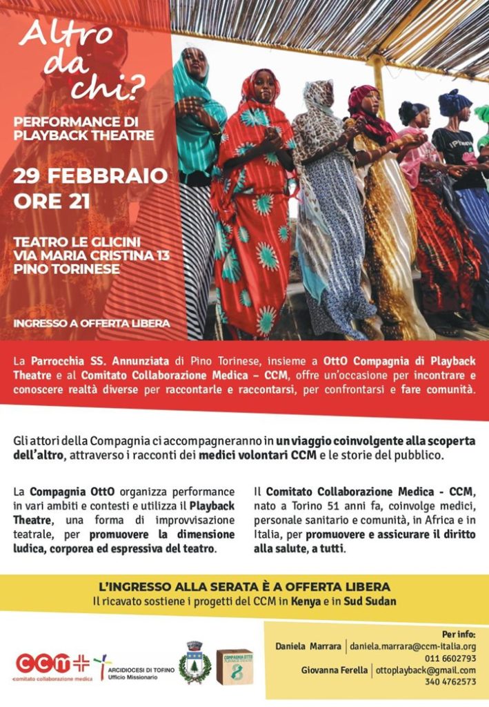 Pino Torinese, sabato 29 febbraio performance di playback theatre per il Comitato Collaborazione Medica di Redazione · 18 Febbraio 2020 Visto da: 36