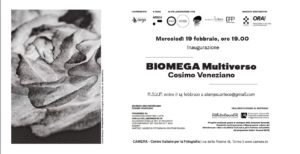 La mostra BIOMEGA Multiverso, presentata da Walter Guadagnini, a cura di Beatrice Zanelli (ARTECO) e Vincenzo Estremo, presso CAMERA. Centro Italiano per la Fotografia è un nuovo momento espositivo del progetto di Cosimo Veneziano realizzato anche grazie al sostegno della Direzione Generale Creatività contemporanea e Rigenerazione urbana del Ministero per i Beni e le Attività Culturali e per il Turismo nell’ambito della settima edizione del programma Italian Council (2019). In concomitanza con la mostra, il 5 marzo 2020 alle ore 18.30, sempre presso CAMERA, l’artista dialogherà con Walter Guadagnini e sarà l’occasione per presentare il volume BIOMEGA Multiverso, a cura di Beatrice Zanelli, dedicato all’intero progetto e pubblicato da NERO EDITIONS. Successivamente, l’opera sarà presentata presso il Contemporary Art Center M17 di Kiev (estate 2020), con la curatela di Lisa Parola e nel settembre 2020 il lavoro verrà acquisito dal MUFOCO – Museo di Fotografia Contemporanea di Cinisello Balsamo (MI), al fine di accrescere la sua collezione museale permanente.